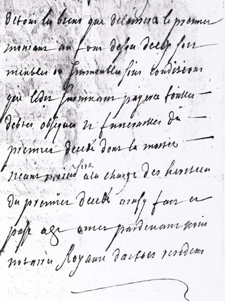 De vertaling van het uittreksel luidt ongeveer als volgt: op 6 februari 1789 is overleden op de leeftijd van 82 jaar, Dominique Joseph Boyaval geboren te Serques, weduwnaar van Louise Catharine Loeuillet. Zijn lichaam wordt begraven op 8 februari bij de kerk in aanwezigheid van zijn zoon Louis Joseph Boyaval en meester Pierre Marie Tavernier van beroep dokter en Chatellenie de Bourbourg.