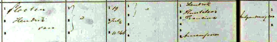 Behandeld wordt het 1ste kind van Hendrik van Slooten en Francijna van Huntelaar (stamnummer 6.5.).